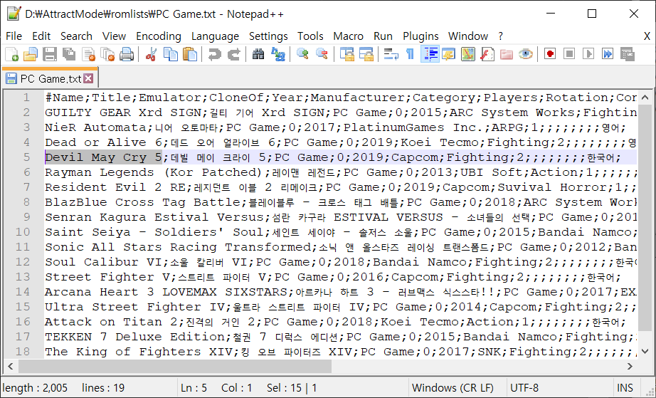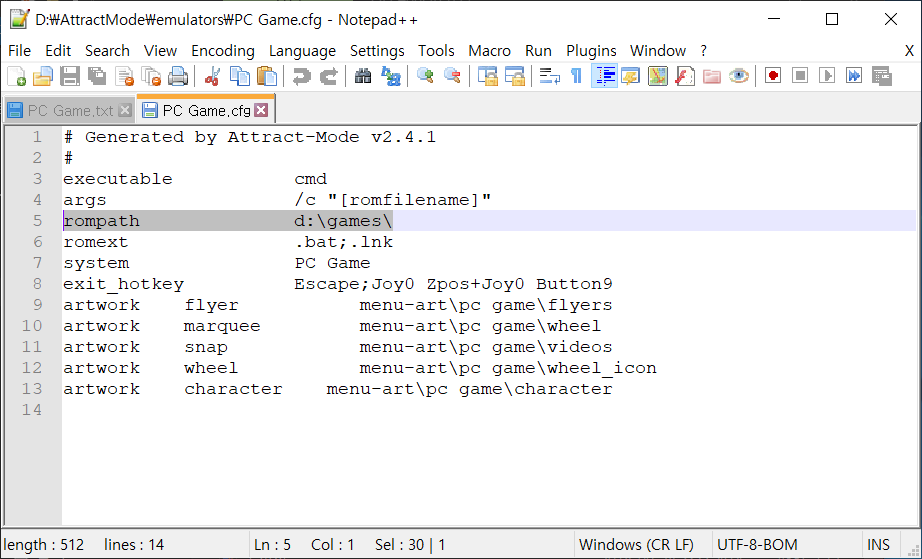 PC Game.cfg 파일을 NotePad++ 을 이용하여 읽어들입니다.