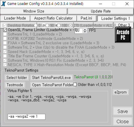 아케이드 PC 로더 프로그램인 테크노패럿을 이용하면 버추어 파이터 5 실행이 가능하긴 한데, 창모드로만 실행이 되고 전체화면으로는 실행이 안되는 문제가 있습니다. 그래서 Game Loader All RH 를 이용하여 전체화면으로 실행하는 방법을 소개할까 합니다.