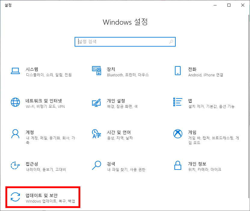 먼저 윈도우 키를 눌러 톱니바퀴 모양 아이콘(설정)을 선택합니다.