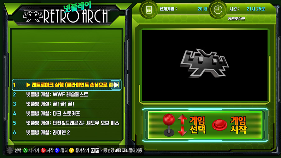 플스클래식 미니와 넷플연동이 되도록 레트로아크와 코어는 조이월드님 버전을 사용하였습니다.