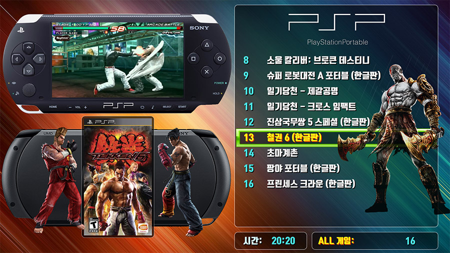 어트랙트모드 한방팩용 휴대용 게임기 테마 레이아웃입니다.