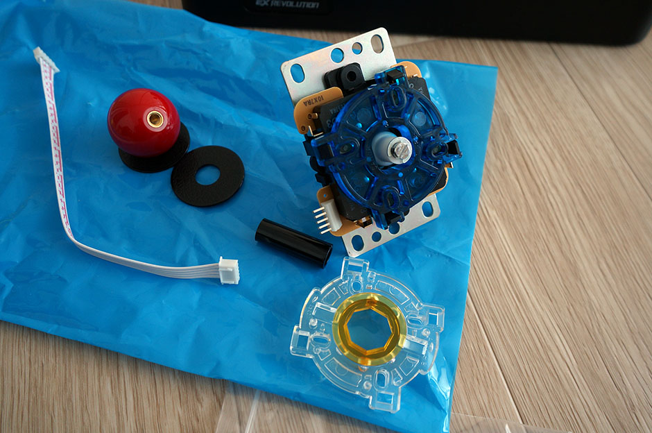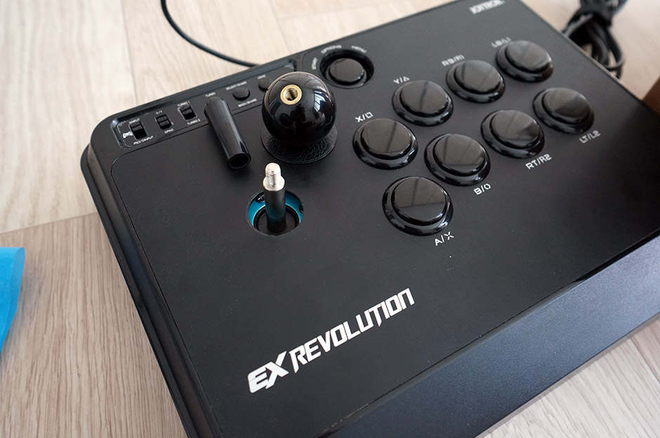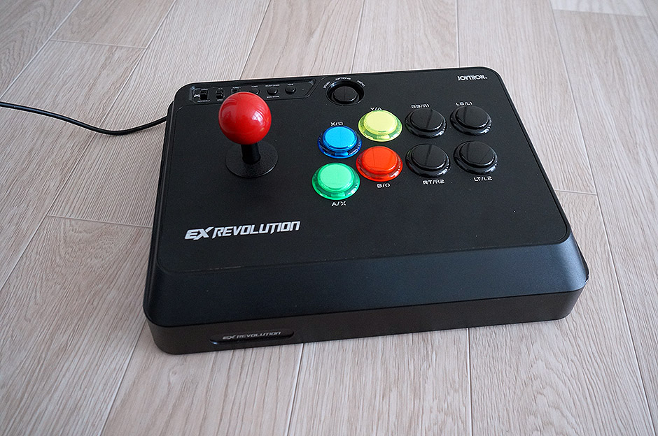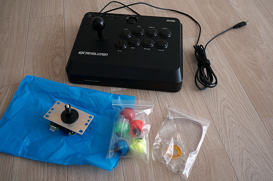저는 조이트론사의 EX 레볼루션 중고를 구한 다음, 레버와 버튼을 교체하였습니다.