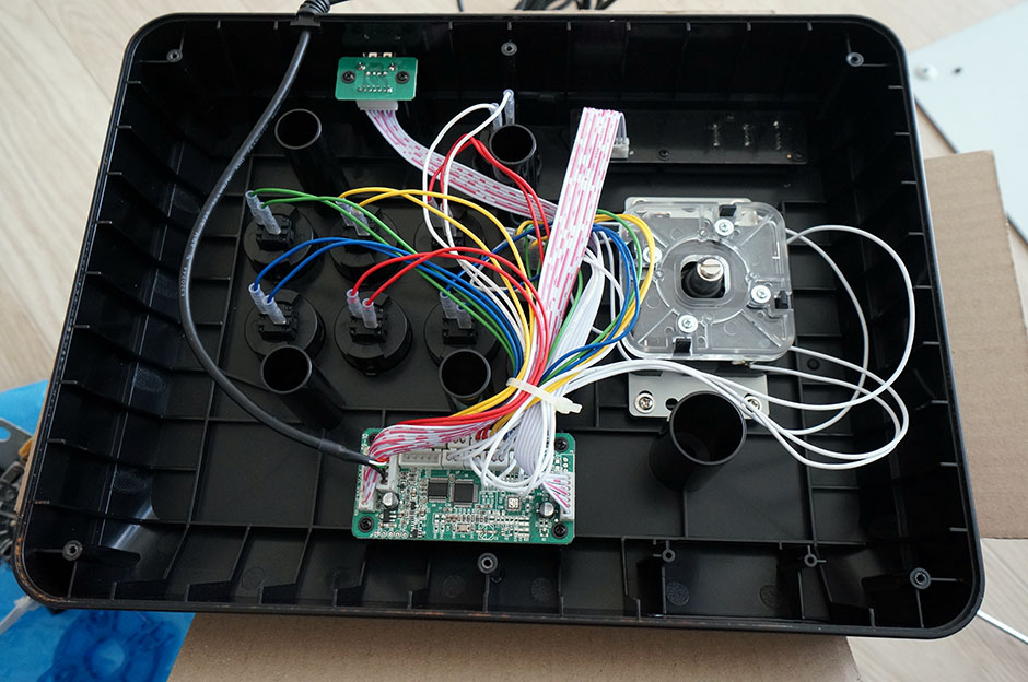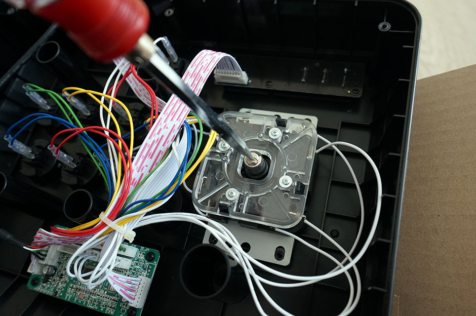 마지막으로 철판을 결합하기 전에 조이스틱을 PC에 연결하여 버튼과 레버가 정상동작하는지 확인합니다.