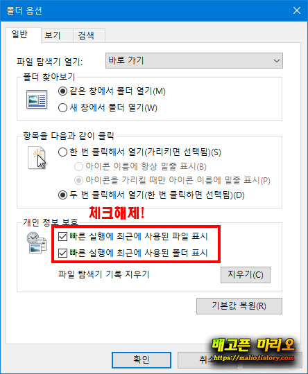 그럼 아래와 같은 폴더 옵션 창이 뜹니다.