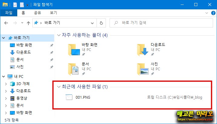 [최근에 사용한 파일]이라는 항목으로 나타나게 됩니다.