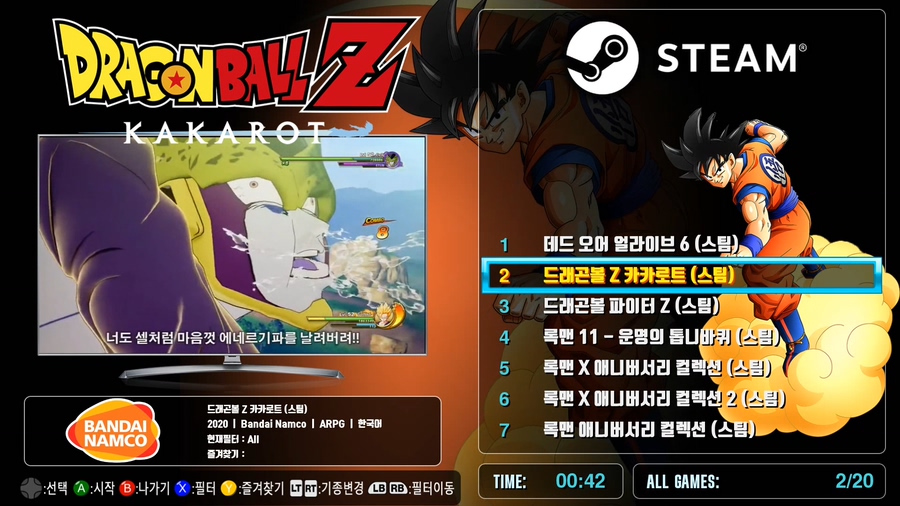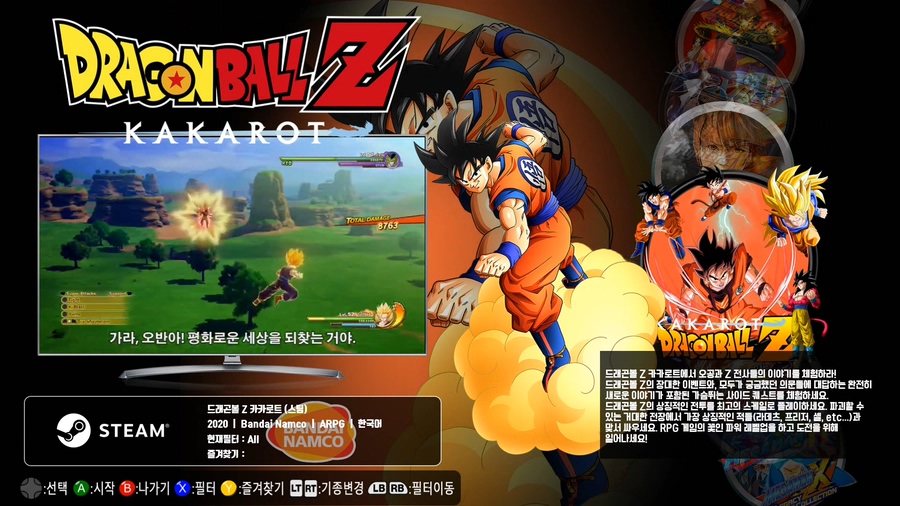 드래곤볼Z 카카로트 스팀판 출시기념으로 어트랙트모드 한방팩 스팀게임코너에 목록추가를 해보았습니다.