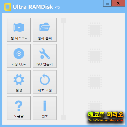 램디스크 유틸은 여러가지 종류가 있으나 저는 국산인 울트라 램디스크가 맘에 들더군요. 깔끔하고 시인성 높은 인터페이스에 속도가 아주 뛰어난것 같습니다.