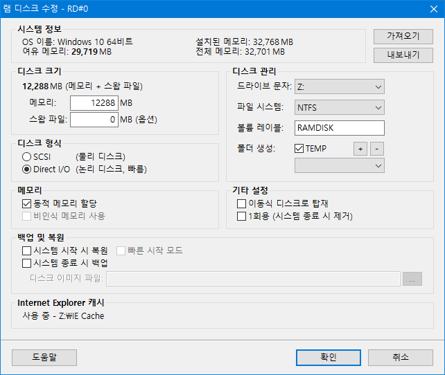 저같은 경우 초기에는 무료 램디스크 프로그램을 주로 이용했습니다. 그러나 무료유틸들은 램디스크 지원 용량이 최대 1~4기가 까지이다 보니 좀더 큰 용량을 원할 경우는 유료 프로그램을 사용해야 했습니다.