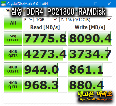 측정결과 램디스크의 쓰기속도가 월등히 높고, PC off시 파일 찌꺼기가 남지 않아