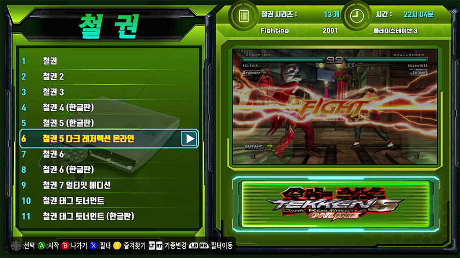 커스텀키 2: 키보드 S 또는 패드의 Back 버튼 커스텀키2를 누르면 검색기능을 이용할 수 있습니다. 타이핑시에는 키보드에서 한글버튼을 켜고 입력해야 한글이름으로 된 게임 검색이 가능합니다.