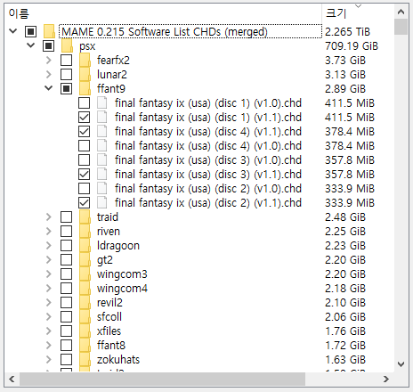 폴더안에 확장자가 chd인 시디이미지 파일이 들어있는 구조로 되어 있습니다.