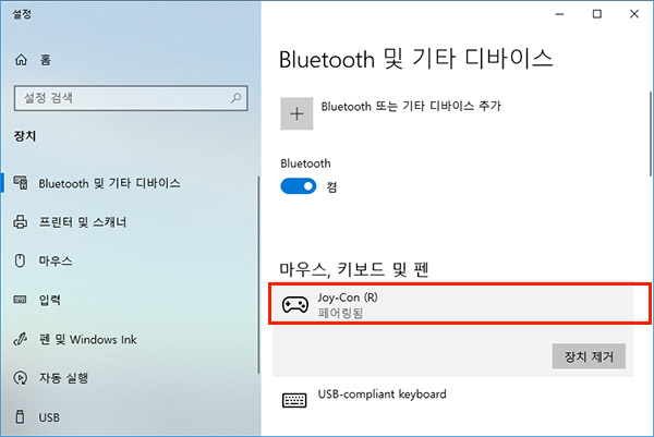 Joy-Con (R) 이 등록되어 연결된 것을 확인할 수 있습니다.