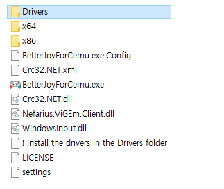 다운받은 압축파일을 풀면 아래와 같은 파일들이 나오는데요, Drivers 폴더안을 들어가면 ViGEmBus_Setup~ 파일이 있습니다. 이 파일을 더블 클릭하여 설치를 합니다. 설치가 끝날때 까지 창을 닫지 마세요.