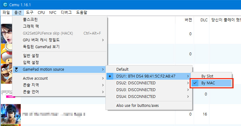 Cemu에서 자이로 기능을 쓰기 위해서는 아래와 같은 설정을 해줘야 합니다.