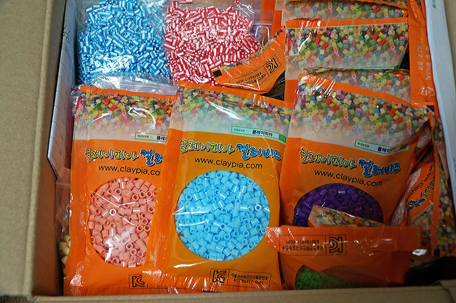 비즈만들기는 유아나 초등 저학년들의 소근육과 두뇌발달에 도움이 된다고 합니다. 처음에는 아이들이 블럭방에서 비즈를 자주 했는데, 블럭방은 너무 비싸서 차라리 집에서 사서 맘껏 하게 해주자는 생각에 인터넷상에서 펄러비즈를 알아봤었죠. 미국정품 펄러비즈는 너무 비싸서 엄두도 못내겠고, 품질이 어느정도 확보되면서 저렴한 비즈를 찾던중 1000개 단위 아주 싼게 있길래 주문했었는데, 그건 비즈품질이 영 맘에 안들더군요. 비즈 절단면과 두께와 높이가 불균일하다 보니 다림질이 균일하게 안되서 외관이 보기싫더라구요.