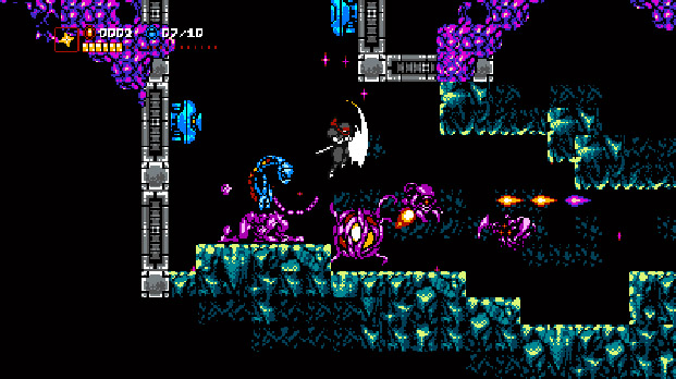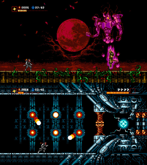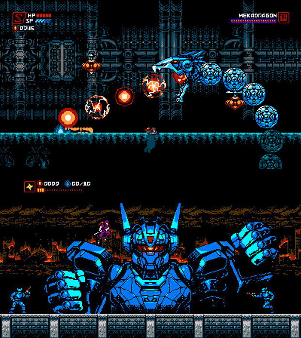 그러한 시장의 흐름을 아주 잘 반영하는듯? 마치 80~90년대 가정용 게임기를 주름잡던 패밀리 게임을 보는것 같은 8비트 도트 감성의 레트로 스타일 2D 게임이 종종 나오고 있는데요, 이번에 제가 소개할 게임은 바로 이러한 스타일의 사이버 섀도우(Cyber Shadow)라는 게임입니다. PC스팀, 스위치, 플스4, 엑스박스원 동시 발매될 예정입니다. 삽질기사로 유명한 Yacht Club Games 에서 발매하는 만큼 재미는 확실히 보장되지 않을까 싶습니다. 화면을 한번 보세요! 패미컴 게임 닌자 용검전이 생각나지 않으신가요?