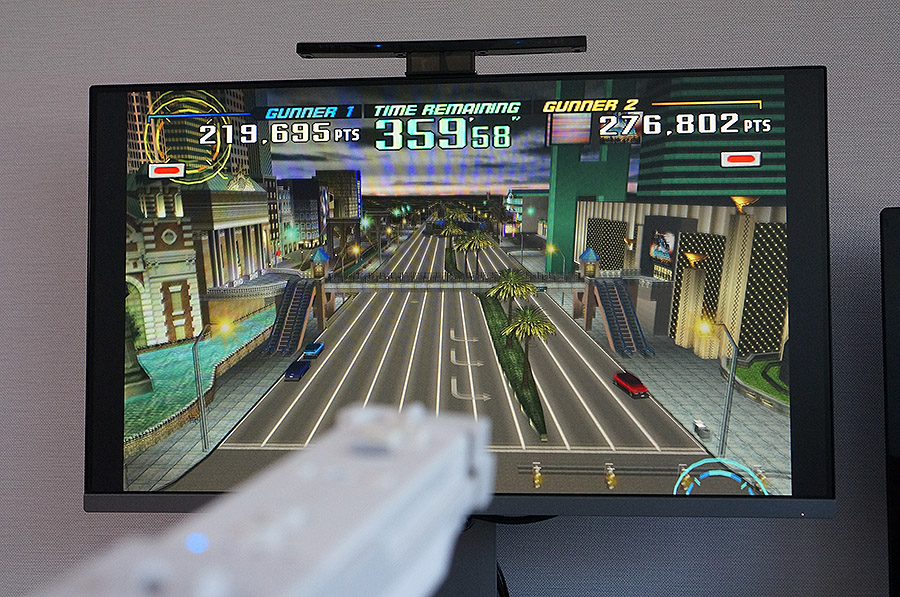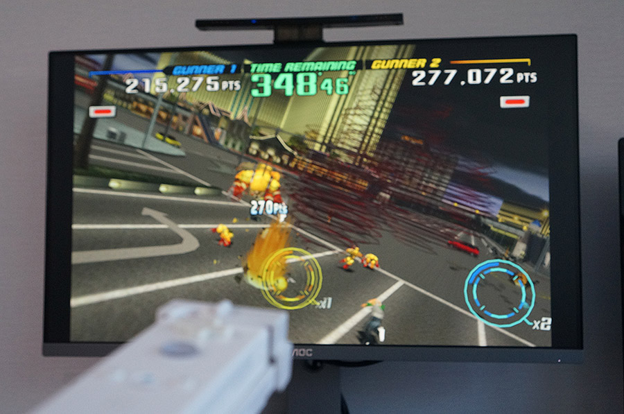 LA 머신건즈는 기관총으로 연사하는 게임이라 건콘 진동 케이스의 능력을 확인하기에 적격입니다.