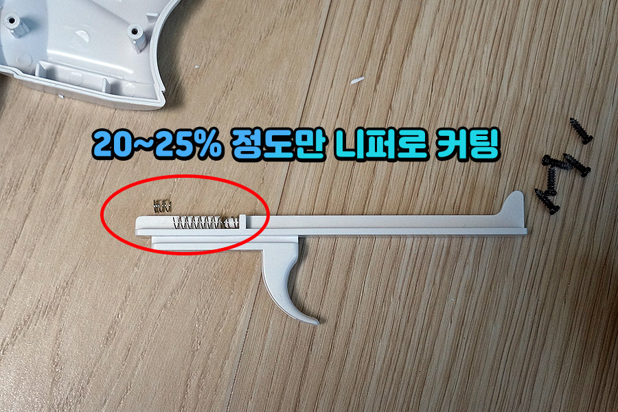 스프링을 너무 많이 자르면 훨거워 질수 있으니, 적당히 잘라줍니다. 저는 사진처럼 약간만 잘라줬습니다.
