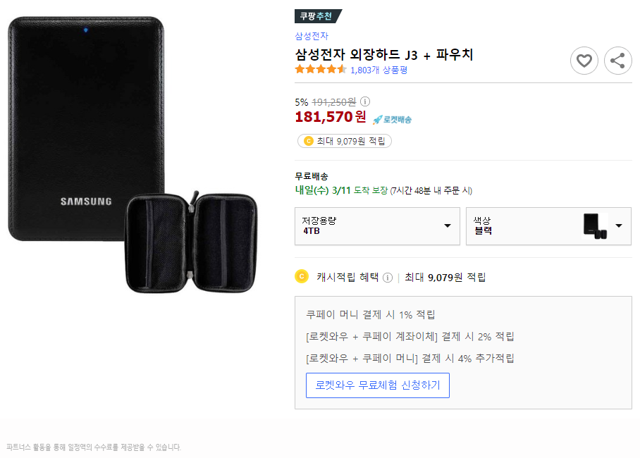이번에 소개할 하드디스크는 삼성 J3 4테라 외장하드 입니다.