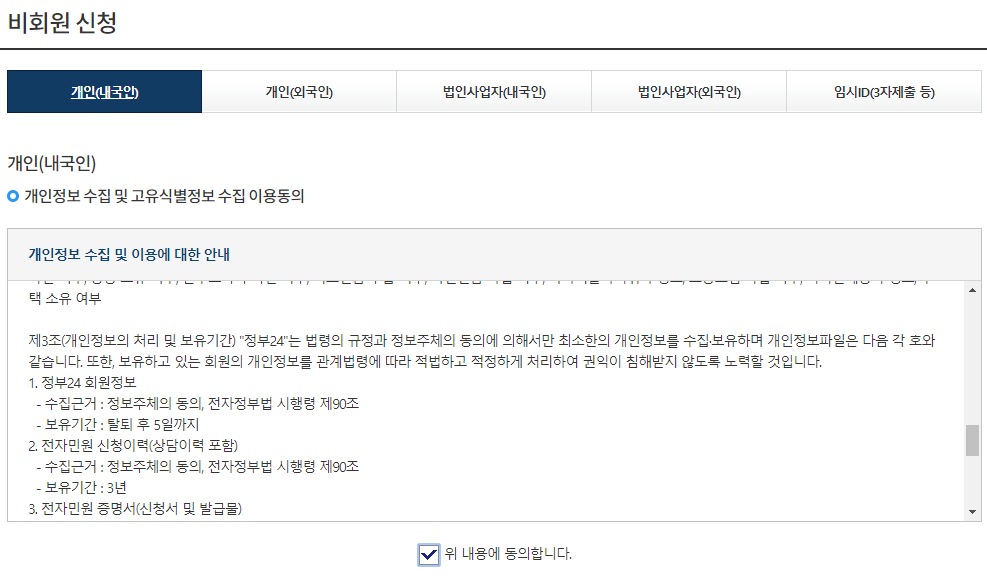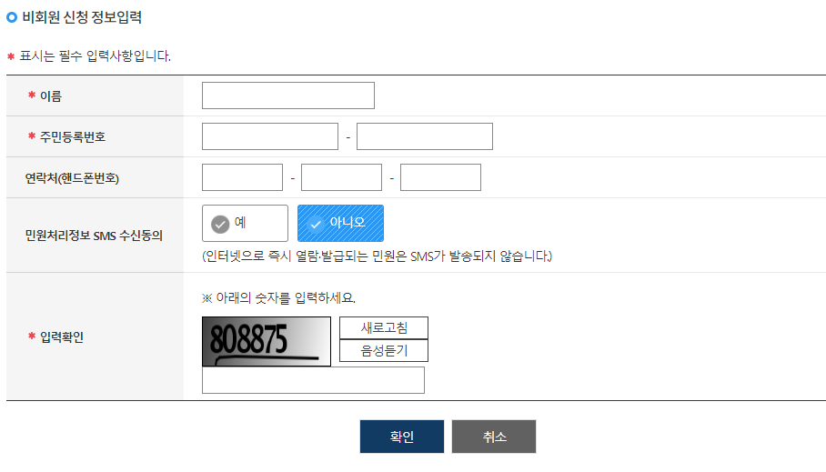 저는 비회원으로 신청하기를 해 보았습니다.