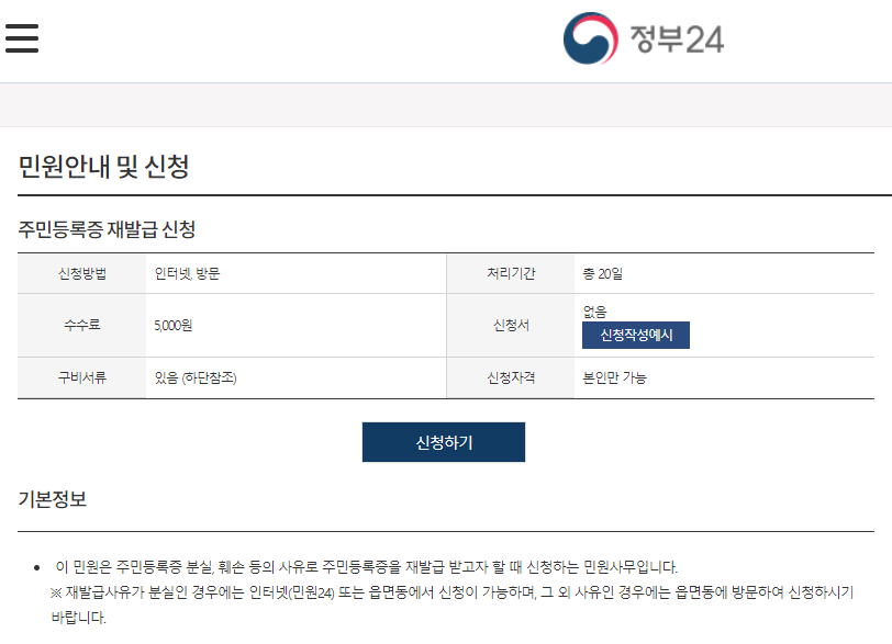 주민등록증 재발급 신청 수수료는 5000원입니다.