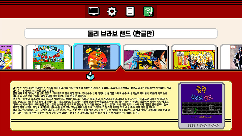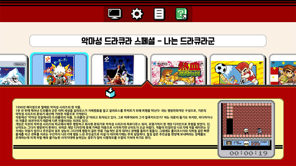 이 제품의 UI는, 이후에 나온 슈퍼 패미컴이나 PC엔진 미니의 UI에도 영향을 끼쳤을 만큼 앙증맞고 귀엽습니다.
