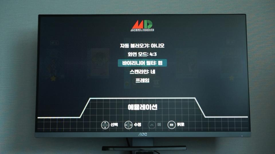 레트로아크 설정메뉴: 셀렉트+스타트버튼