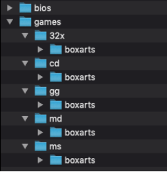 32x 게임파일은 32x 폴더안에 넣고, 게임표지 사진파일은 32x폴더 하위에 있는 boxarts 폴더안에 넣어줍니다.