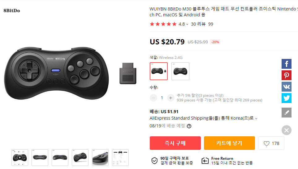 리뷰할 게임패드는 8BitDO (8비트도) M30 6버튼 블루투스 게임패드입니다.