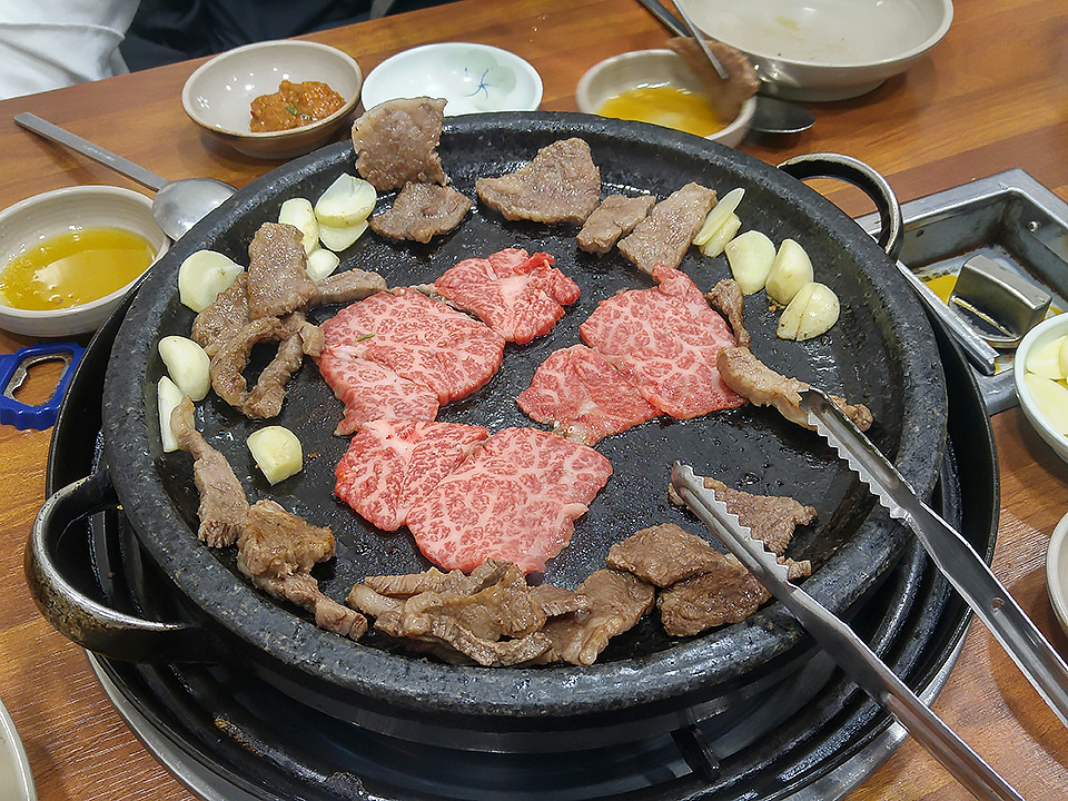 집에서 구워먹는 것과는 맛이 확실히 다르다고 느꼈는데 고기의 마블링이 환상적이더군요.