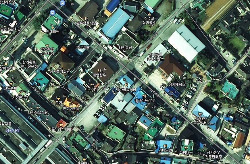아래 지도는 삼가면의 대표적인 한우식육 식당들이 모인곳입니다.