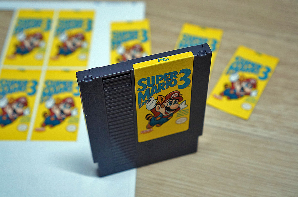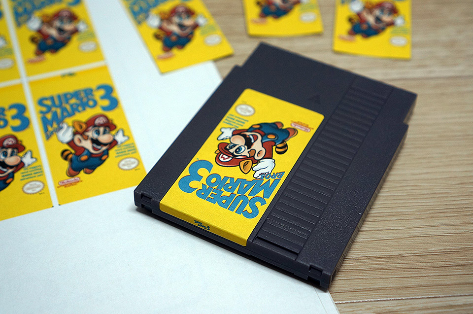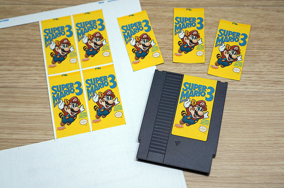 팩 카트리지 커버는 게임과 관련 없는 집 그림?? 커버 이미지가 붙어져 있는데요. 진정한 레트로 감성을 위해서는 실제 게임의 커버 이미지로 변경해 주면 훨씬 보기 좋겠다 싶더라구요. 그래서 웹상에서 싶게 찾을수 있는 사진을 구해서 라벨지(스티커 용지)에 인쇄한후 카트리지에 부착해 보았습니다.