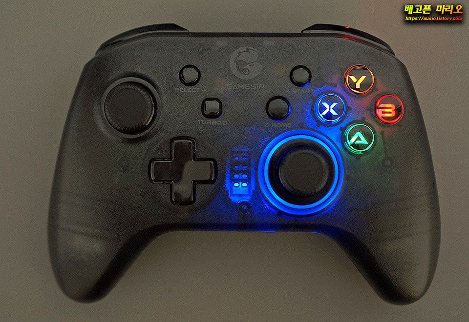 버튼과 아날로그 스틱에 LED 불이 들어오는데 사진보다 실물이 더 이쁩니다.