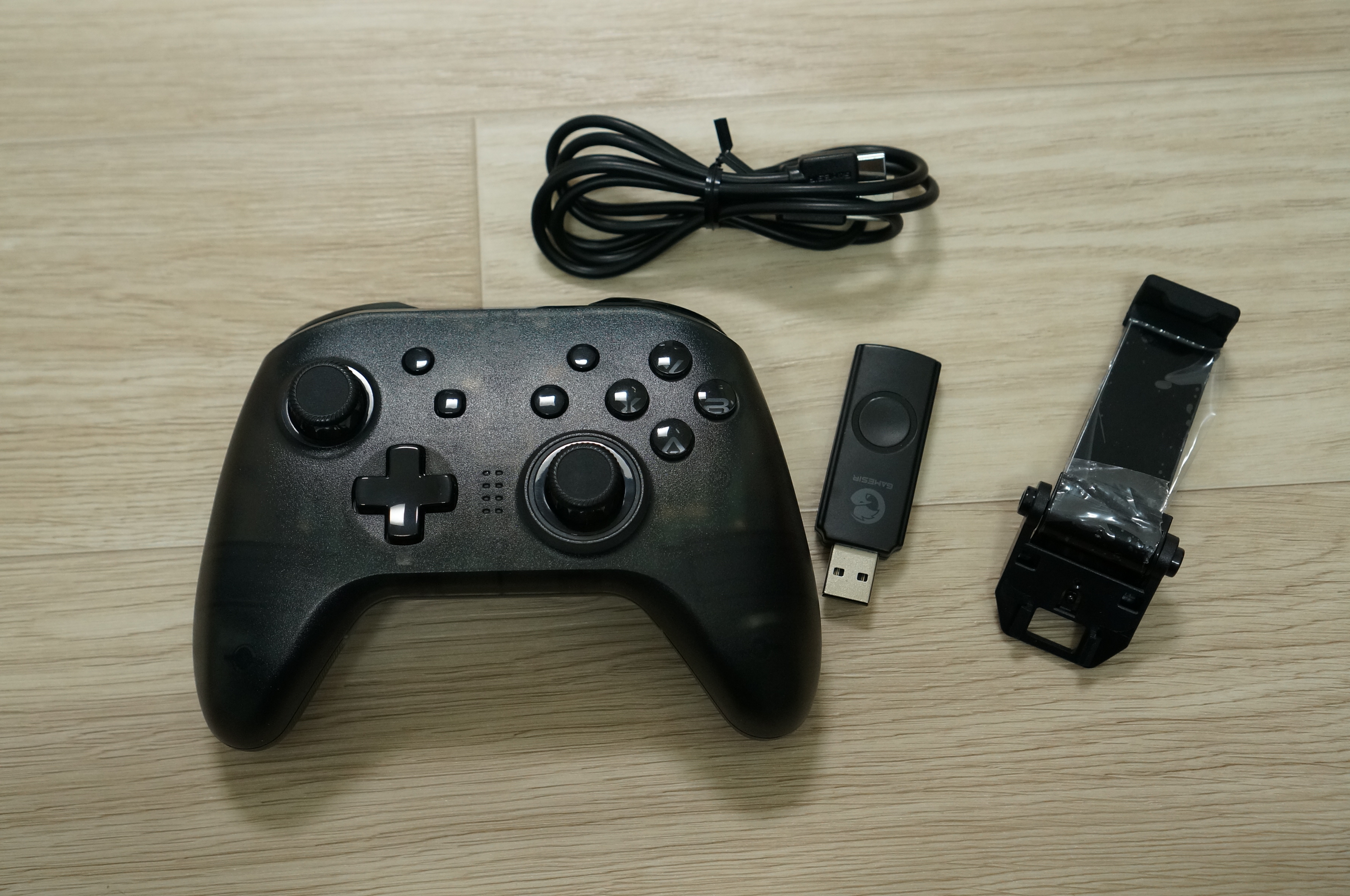 다시 한번 이 게임패드의 스펙을 요약하자면, PC스팀(엑스인풋 유무선), 닌텐도 스위치(블루투스/유선), 안드로이드/iOS, 라즈베리파이를 모두 지원하고 있으며, 전용 폰 홀더를 통해 휴대폰을 거치하여 사용가능하며, 자이로6축센서, 배터리용량 600mAh, LED 버튼, 프로그래밍 가능한 백버튼 기능을 가지고 있습니다.