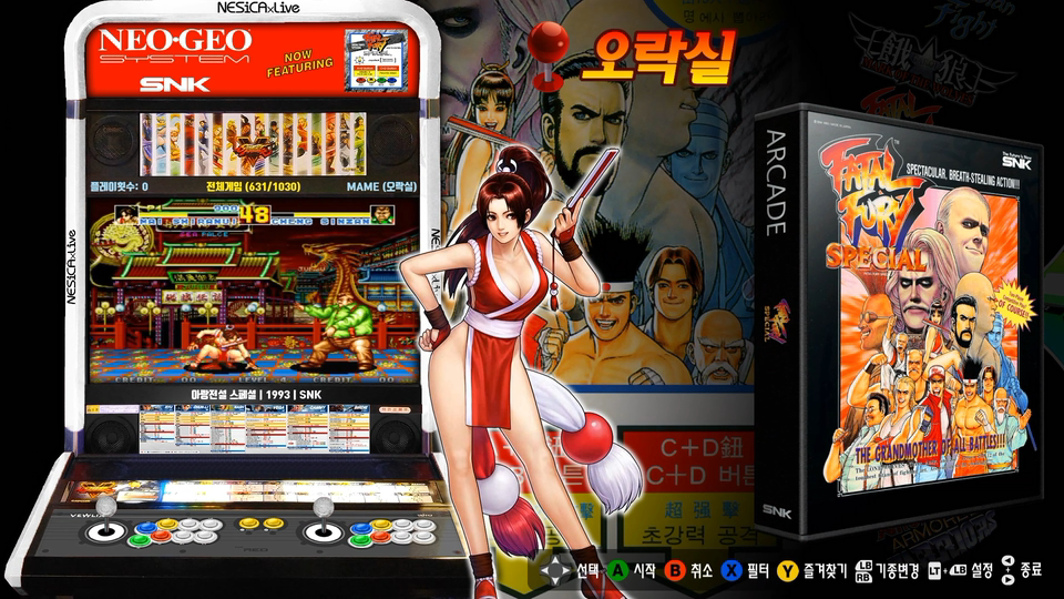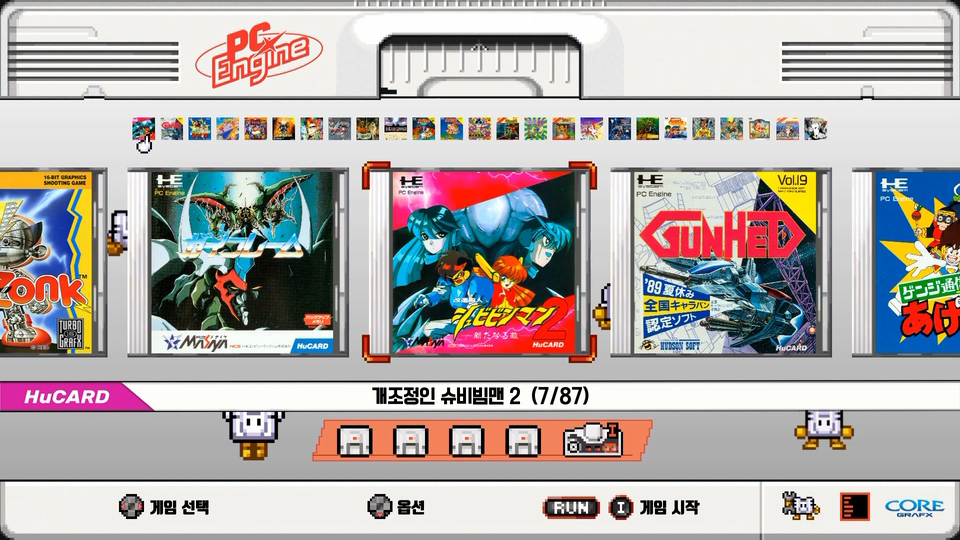 그리고 오락실(아케이드)게임은 변함없이 마메나 전용에뮬레이터를 사용하고 있습니다만, 콘솔게임은 이번에 실행 에뮬레이터를 레트로아크로 모두 전환하였습니다. 콘솔게임에 한해서는 레트로아크가 마메보다 완성도가 높아서 더 쾌적한 플레이가 가능하고, 부가기능이 적은 독립형 에뮬과 달리 레트로아크는 다양한 화면 섀이더 효과와 16:9 와이드 화면의 좌우여백을 꾸며주는 오버레이 베젤 적용이 가능하여 외관상으로도 더 보기 좋게 되었습니다.