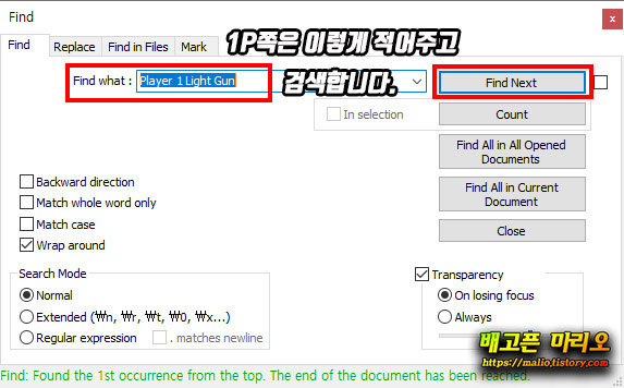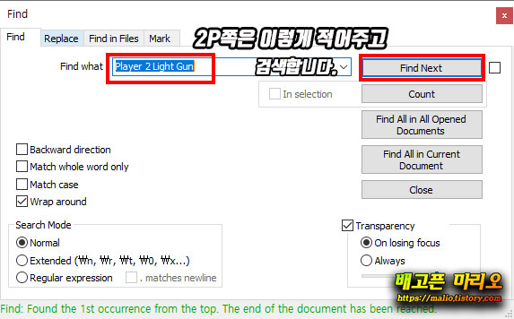 설정파일을 노트패드++ 유틸로 읽어줍니다.메모장도 가능하지만 노트패드++ 유틸이 사용하기 편합니다.Ctrl + F 키를 눌러 찾기창을 엽니다.