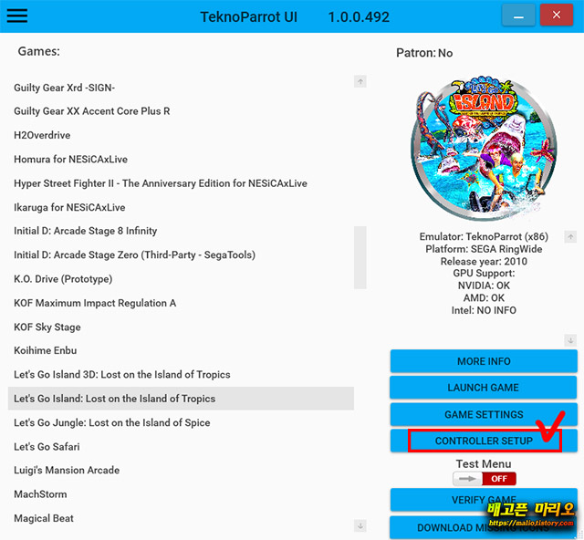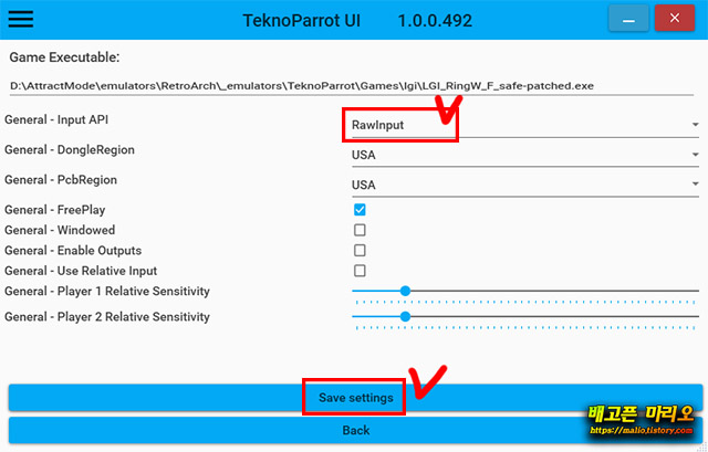 이상으로 테크노패롯 게임의 건콘 키설정이 끝났습니다.