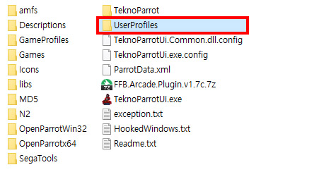 [ 마우스 팁! ] 마우스로 조작하고 싶을 경우에는 Mayflash DolphinBar 대신 Windows Mouse Cursor 를 선택하면 마우스 움직임에 따라 타겟팅이 됩니다. 나머지 발사, 재장전, 동전, 스타트 버튼은 마우스 버튼과 키보드 버튼으로 적당히 배정해 주면 됩니다.1P 2P 구분은 저장된 설정파일을 수작업으로 변경해줌으로써 가능합니다. 이때 앞서 데뮬슈터에서 확인했던 장치ID값이 필요합니다. (참고: 에임트랙 건콘은 #1 #2로 구분이 되기때문에 추가적인 수작업이 필요없습니다.)테크노패롯의 하위폴더를 보면 UserProfiles라는 폴더가 있습니다. 이 폴더는 방금 저장한 게임의 설정파일이 저장되어 있는 곳입니다.