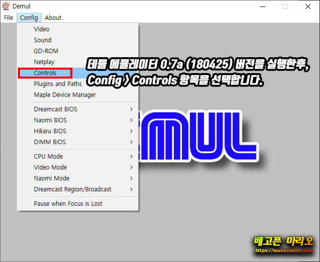 Demul.exe 파일을 실행한후 Config>Controls 항목을 선택합니다.