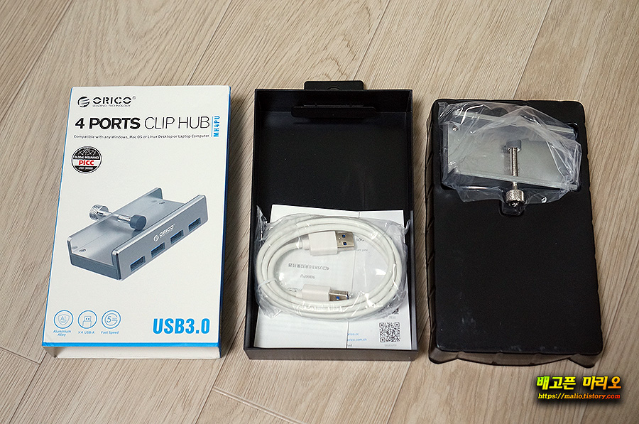 구성은 간단합니다. USB케이블과 허브가 들어있습니다.