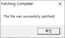 그러면 아래와 같이 패치가 성공했다는 메세지가 뜹니다.