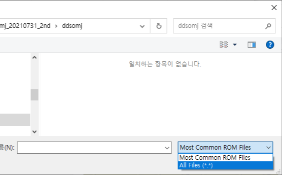 선택후, 원본롬을 선택하는 창으로 바뀌는데 아래 사진과 같이 All Files(*.*)로 변경해주면