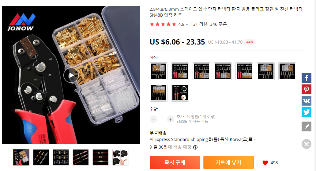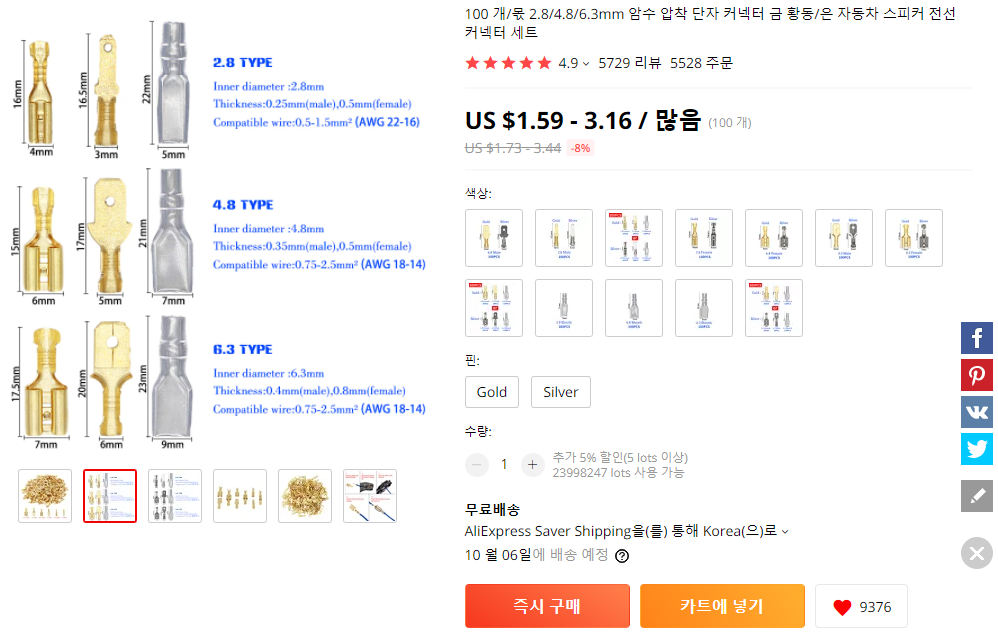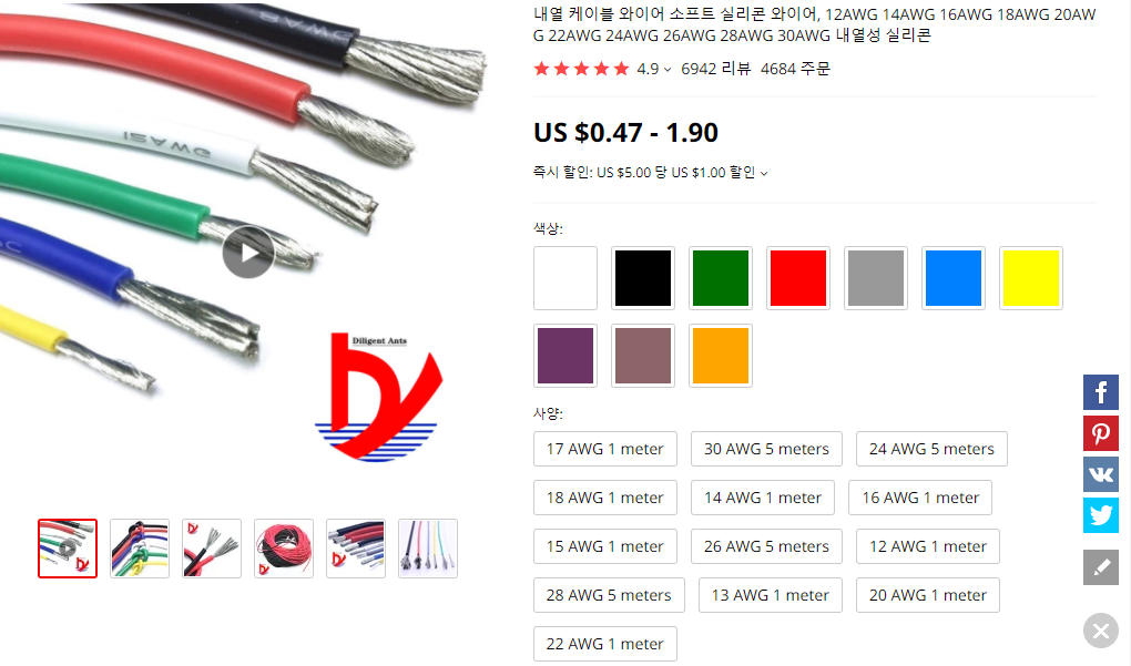 (AWG 값이 클수록 두께가 얇아요. 저는 범용으로 22짜리 샀네요)
