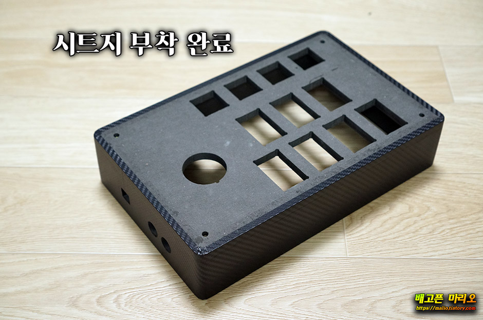 조립완료된 케이스에 시트지를 부착하였습니다.