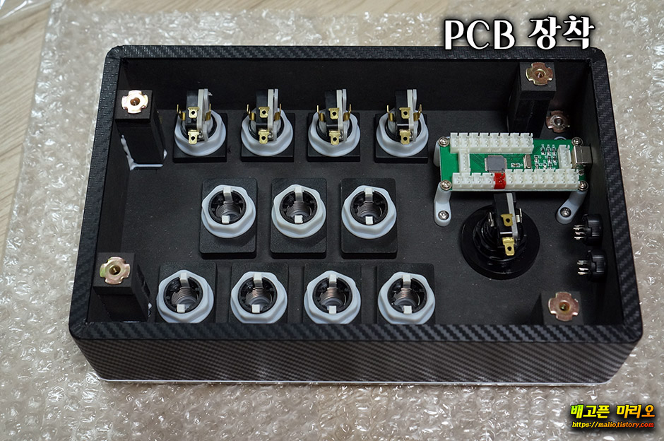 지지기둥을 목공풀로 접착해준 다음. PCB를 아래 사진과 같이 장착합니다.
