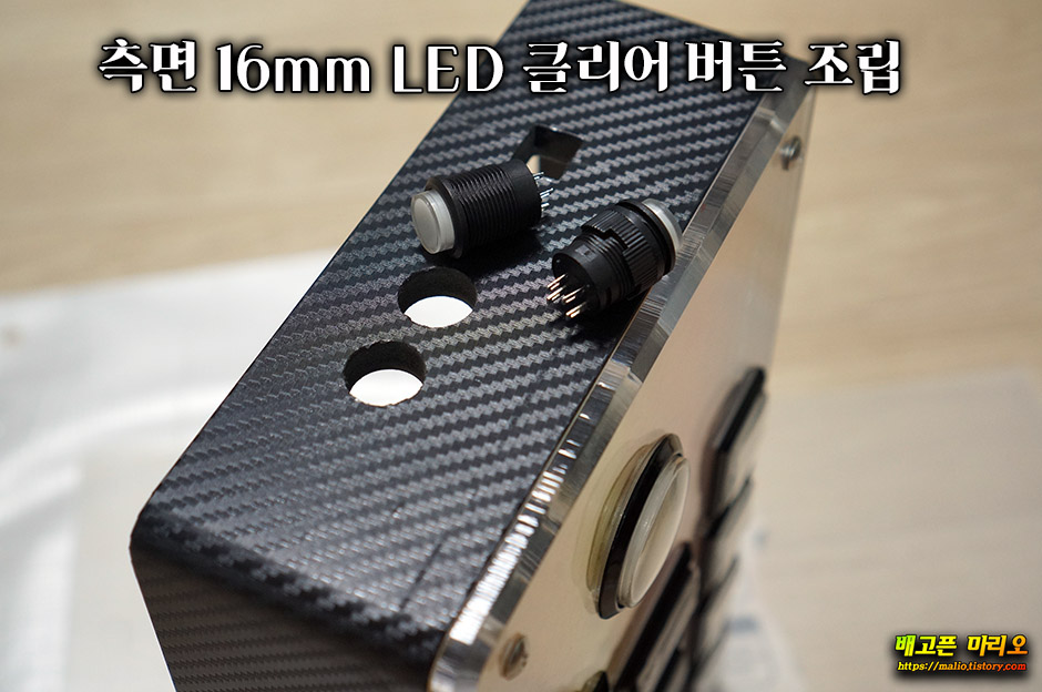 보조용 측면 버튼은 16mm LED 클리어 버튼을 조립해 주었습니다.