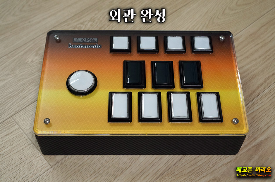 팝픈콘에 이어 이번에는 비트매니아(비트콘)와 디제이맥스 컨트롤러(디맥콘)를 직접 만들어 보았습니다. 이중에서 먼저 비트매니아 컨트롤러 제작기를 써보고자 합니다. 최대한 작은 사이즈, 심플한 외관으로 만들기 위해 거대한 디스크판은 과감히 제외하고 (사실 만들줄 모름 ^^) 45mm 원형버튼으로 대체하였습니다.