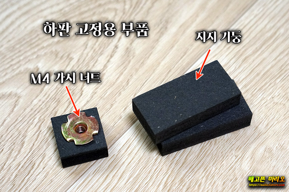 이번엔 바닥 하판(뚜껑)과 케이스간 체결을 위한 지지 기둥을 조립할 차례입니다.
