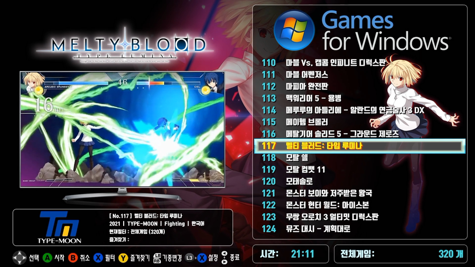 이번에 PC스팀, 닌텐도 스위치, 플스4, 엑스박스원으로 발매된 신작 멜티 블러드 타입 루미나를 어트랙트모드 테마용으로 만들어 보았습니다.