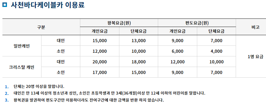 요금은 일반캐빈이 인당 대인 15000원, 소인 12000원인데,